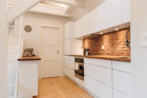 W apartamencie goście mają do dyspozycji aneks kuchenny wyposażony m.in. w lodówkę, piekarnik, płytę kuchenną oraz zmywarkę. Dodatkowo przygotowano zestaw do parzenia kawy i herbaty oraz suszarkę bębnową. W części wypoczynkowej czeka telewizor z płaskim ekranem i kanałami kablowymi oraz kominek nadający wnętrzu przytulny charakter. Nie zabrakło także pralki oraz żelazka wraz z deską do prasowania.